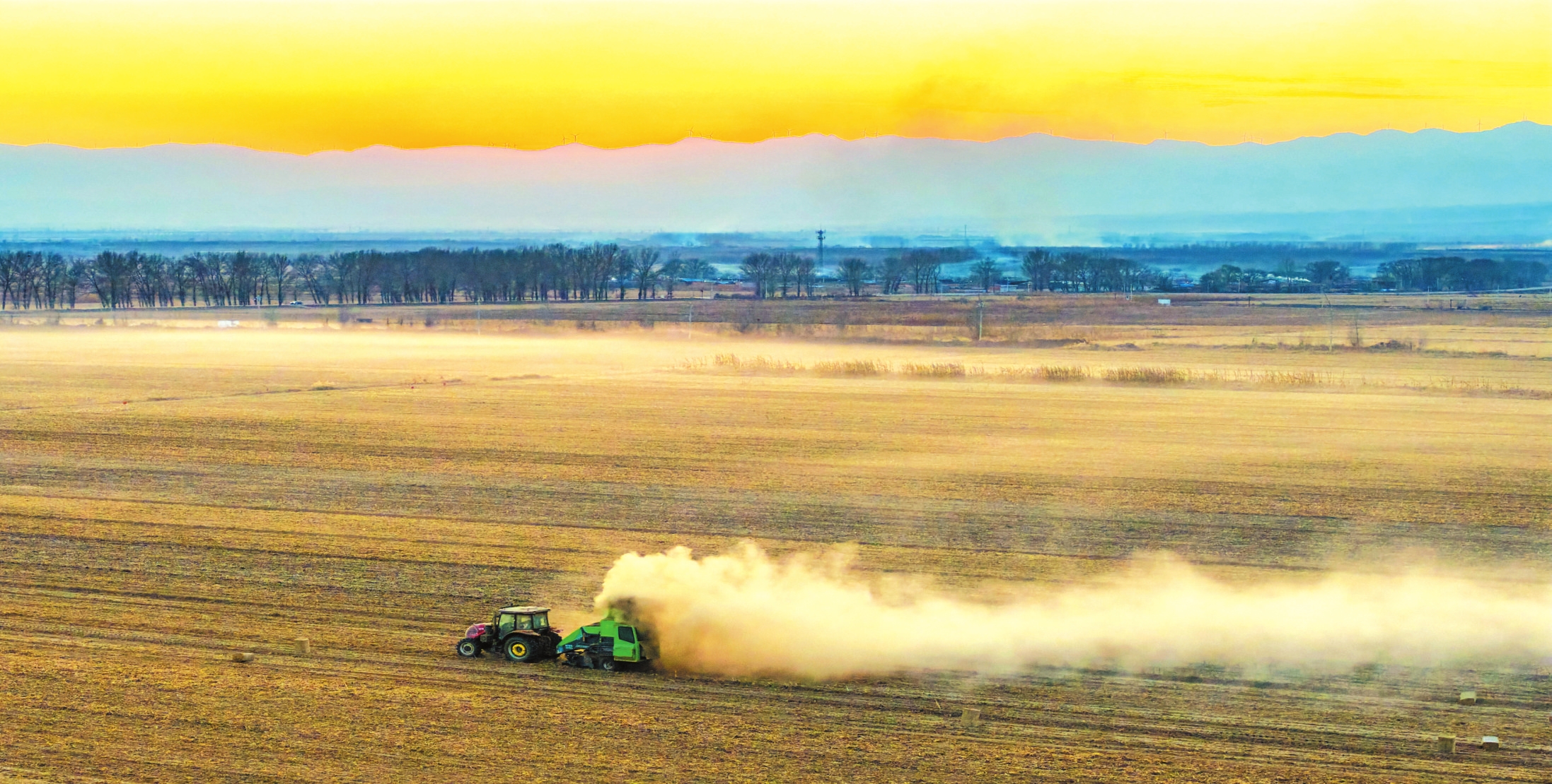 11月24日,原平市中陽鄉(xiāng)大狼溝村的村民們正忙碌地將玉米秸稈打捆歸集。近年來,原平市大力推進秸稈回收利用,將玉米秸稈轉化為飼料、燃料、纖維原料,不僅有效避免了因秸稈廢棄或焚燒導致的環(huán)境污染,也為養(yǎng)殖戶降低了飼養(yǎng)成本,拓寬了增收渠道。(王晉東攝)