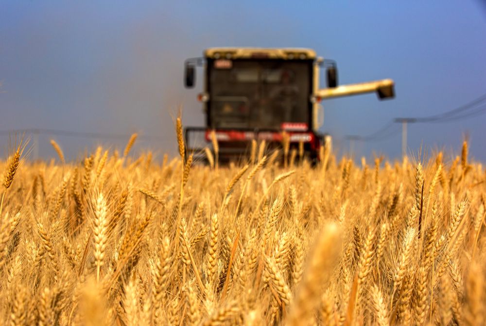 2020年6月10日,在河北省武安市大同鎮(zhèn)馬會村,農(nóng)機(jī)手操作機(jī)械設(shè)備收割小麥。新華社記者 王曉 攝