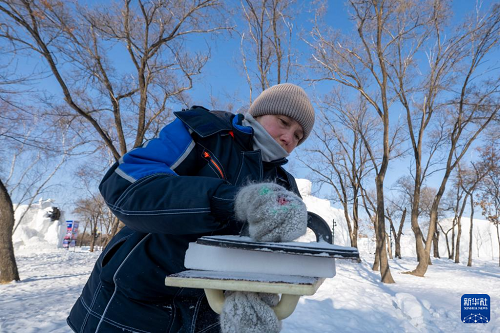 1月7日,在哈爾濱太陽島雪博會園區(qū),來自13個國家的25支代表隊百余位藝術(shù)家在寒冬中堅持藝術(shù)創(chuàng)作,精雕細琢雪雕作品。