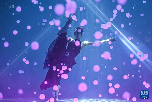 1月14日,舞者在2026中國(guó)極限舞蹈表演賽期間進(jìn)行水下舞蹈表演。(新華社記者 蒲曉旭攝)