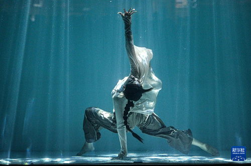 1月14日,舞者在2026中國(guó)極限舞蹈表演賽期間進(jìn)行水下舞蹈表演。(新華社記者 蒲曉旭 攝)