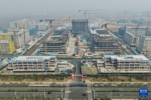 北京交通大學(xué)雄安校區(qū)建設(shè)現(xiàn)場(chǎng)(3月25日攝,無人機(jī)照片)。(新華社記者 牟宇 攝)
