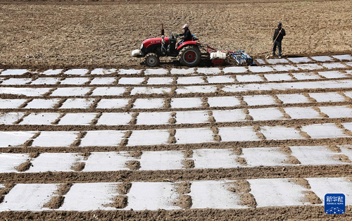連日來,在黃土高原上的甘肅省天水市武山縣,當(dāng)?shù)剞r(nóng)民抓住近期降雨較多、土壤墑情好的有利時機(jī),及時整地、施肥、覆膜保墑,覆膜后的山地梯田成為黃土高原上一道亮麗的春日風(fēng)景。