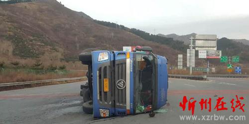 2016年11月19日17時00分許,山西交警高速二支隊九大隊民警翟躍、郭騏源接到報警稱:在五保高速12km(五臺山景區(qū)收費站內(nèi)廣場)處,有一輛藍色歐曼牌重型半掛貨車因操作不當,將掛車內(nèi)裝的鋼棒側(cè)滑,導(dǎo)致車輛側(cè)翻,造成車輛及路產(chǎn)不同程度損壞的道路交通事故。大隊民警第一時間趕赴現(xiàn)場,及時詢問當事人是否受傷,是否需要撥打“120”急救,并了解了當時的事發(fā)情況。當事人稱:“自己一個人開車回定襄,為省過路費,想著從五臺山景區(qū)高速口下,繞行低速回定襄,由于在下匝道時,打方向過急,車速較快,將車上所拉的鋼棒側(cè)滑,造成車輛的側(cè)翻,所幸人沒有受傷。”之后,民警對現(xiàn)場進行勘查,并調(diào)取監(jiān)控視頻,發(fā)現(xiàn)車輛在轉(zhuǎn)彎時,車速較快,駕駛員操作不當是造成事故發(fā)生的原因。