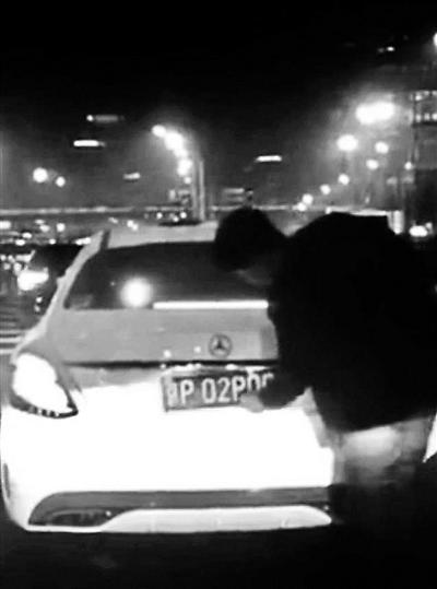 楊某系河北保定人。12月2日下午,他從朋友處借來(lái)這輛冀F號(hào)牌“奔馳”小轎車前往北京探望朋友。當(dāng)天下午行駛至朝陽(yáng)區(qū)東三環(huán)主路時(shí),因違反禁止通行規(guī)定,被民警攔截處罰,并被要求駛出禁行區(qū)域。此后,楊某將車開(kāi)出三環(huán)主路,將車輛尾部號(hào)牌拆下,換上京P號(hào)牌,并繼續(xù)前往國(guó)貿(mào)橋其朋友處。到17:40左右,楊某從朋友處出發(fā)行駛至東長(zhǎng)安街輔路西向東銀泰中心門前。在等紅綠燈放行時(shí),車上一男子和楊某先后下車將尾部號(hào)牌換回冀F號(hào)牌。更換完畢后,楊某駕車返回河北保定。