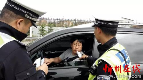 九大隊(duì)民警正在對(duì)過(guò)往司機(jī)進(jìn)行酒精測(cè)試
