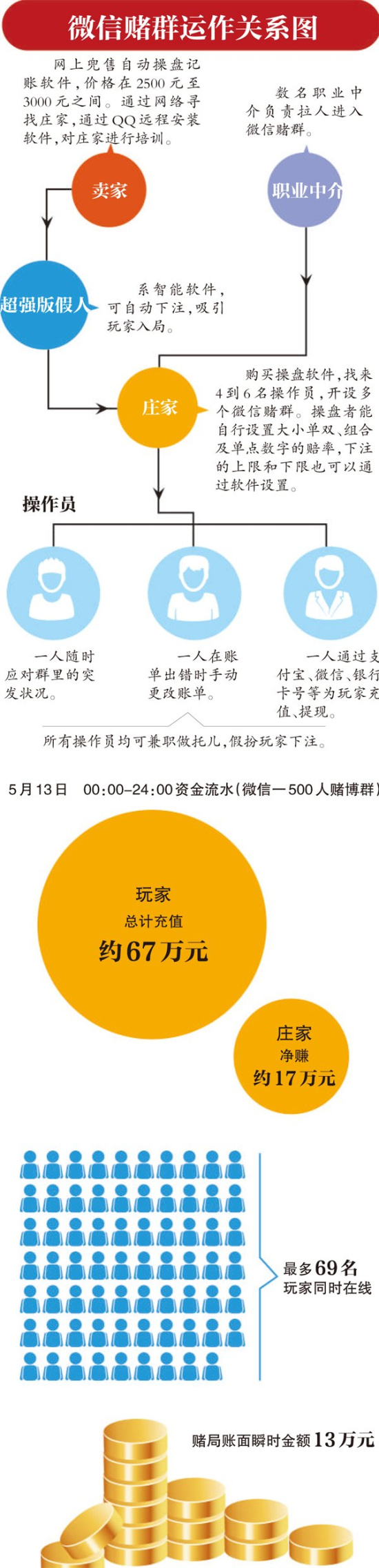 6月12日,某報記者臥底微信賭場的報道給人們揭開了“微信賭場”的可怕內(nèi)幕:開一局只需5分鐘,下注、開局、下注……賭局像車輪滾動,你甚至來不及眨幾下眼,也不知道錢輸給了誰,成千上萬賭資就已蒸發(fā)。一位賭徒這樣描述,“血淋淋的,押下去是一串沒有感覺的數(shù)字,玩完才發(fā)現(xiàn)輸了一大筆,這比現(xiàn)實中的賭場恐怖太多?!?/p>