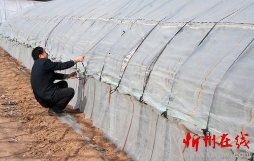 春回大地 ,萬(wàn)物復(fù)蘇。2月23日,原平市田野上農(nóng)民們已開始勞作,為春播做好準(zhǔn)備,這是正在為新建的蔬菜大棚鋪膜覆蓋,準(zhǔn)備育苗。(趙月仁 攝)