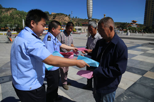 6 月24日,靜樂縣公安局在該縣街頭多處設(shè)點開展禁毒宣傳活動,通過掛橫幅、立展板、發(fā)放宣傳資料、現(xiàn)場解答群眾咨詢等方式大力宣傳毒品的危害性?;顒赢斎眨舶l(fā)放禁毒宣傳資料3500 余份,擴大了禁毒宣傳覆蓋面,使廣大群眾自覺抵制毒品危害的意識進一步得到了提高。(李敏 攝)