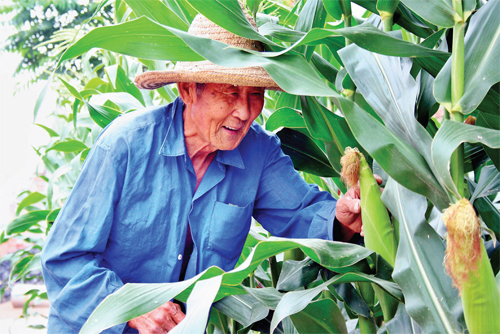 7 月4 日,原平市武彥村老農(nóng)看著長(zhǎng)勢(shì)喜人的玉米喜上眉梢:如今惠農(nóng)政策真是好,調(diào)動(dòng)了俺們的種田積極性,利用科技種的玉米,長(zhǎng)得好,結(jié)穗早,收入高,看著真開(kāi)心。(趙春曉 攝)