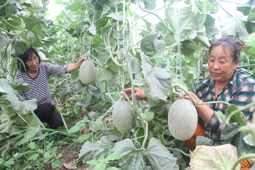 7月28日,原平市雙惠現(xiàn)代農(nóng)業(yè)示范園區(qū)的哈密瓜種植基地,鋼架溫室大棚里,藤蔓在架子上攀援,繁茂的枝葉間,一個個圓滾滾的小哈密瓜已經(jīng)探出了腦袋。近年來,該園區(qū)積極探索農(nóng)民工多元增收途徑,調(diào)整農(nóng)業(yè)種植結(jié)構(gòu)。這次引進(jìn)新疆哈密瓜種植取得成功,為我市發(fā)展高效農(nóng)業(yè)起到了示范作用。圖為工作人員正在查看哈密瓜長勢,預(yù)計八月初可收摘上市。(褚震 攝)