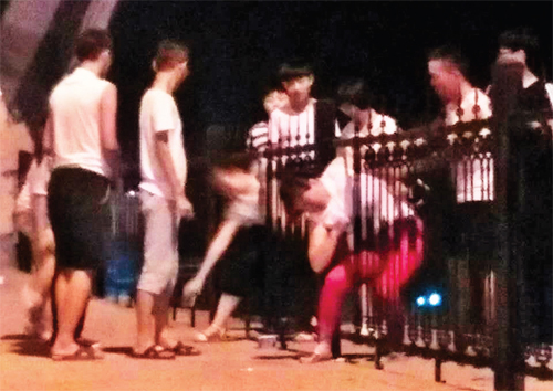 8月9日晚21點左右,在城區(qū)云中河景區(qū)游園乘涼的市民依然絡(luò)繹不絕。一群十五六歲學(xué)生模樣的青年將幕山橋上的鐵柵欄分開,一個個鉆過隔離欄魚貫而出,引來橋上欣賞夜景的市民們一片譴責(zé)之聲。