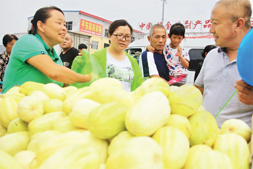 8月21日,原平市民老張正在該市農(nóng)貿(mào)市場銷售香瓜,他的香瓜成了搶手貨,賣了個(gè)好價(jià)錢。他說,這樣的錯(cuò)峰種植雖然利潤不小,但要做好計(jì)劃,合理利用土地,才能讓土地種植不減收。(吉建平 攝)