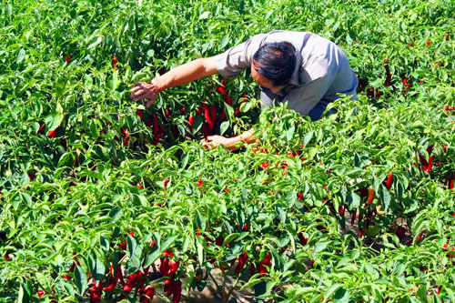 9月1日,原平市南灘村農(nóng)民武金雙正在管理種植的北京紅辣椒。該村調(diào)整產(chǎn)業(yè)結構,由原來種植玉米地,如今引進種植了新品種北京紅辣椒長勢喜人,又是一個豐產(chǎn)年,促進了農(nóng)業(yè)增產(chǎn),農(nóng)民增收,他們?nèi)缃竦纳罹拖窦t辣椒一樣過的紅紅火火。(趙春曉 攝)