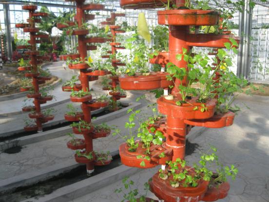 河曲縣南園村智能溫室農(nóng)民技術(shù)員利用科技手段培育葉類、根類、果實類等各種瓜果蔬菜,令人耳目一新。溫室每天對外開放,讓群眾參觀學(xué)習(xí),起到了很好的示范引領(lǐng)作用。圖為“螺旋柱”培育苦苣和芹菜。(賈金理 攝)