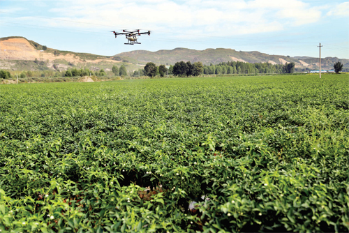 9月11日,在靜樂縣永倉(cāng)種植專業(yè)合作社辣椒種植示范園,操作人員正在遙控?zé)o人機(jī)噴灑農(nóng)藥。據(jù)了解,無(wú)人機(jī)噴灑農(nóng)藥具有速度快、效率高等特點(diǎn),1架無(wú)人機(jī)平均每天噴灑面積可達(dá)1000畝。(閆曉梅 攝)