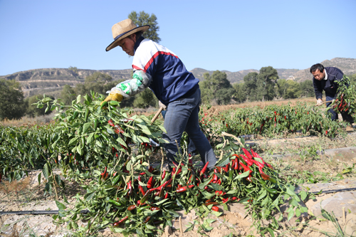 10月8日,靜樂縣永倉種植專業(yè)合作社萬畝辣椒種植示范園中10300畝辣椒喜獲豐收。近年來,該縣調(diào)整產(chǎn)業(yè)結(jié)構(gòu),大力發(fā)展無公害辣椒種植,引進(jìn)種植新品種韓國紅辣椒。該合作社今年連片訂單栽植的10300 畝辣椒目前長勢良好,預(yù)計平均畝產(chǎn)6000 斤,最高可達(dá)一萬斤。今年又是一個豐產(chǎn)年,大伙的生活就像紅辣椒一樣過得紅紅火火。圖為合作社工人在收獲辣椒。(閆曉梅 攝)