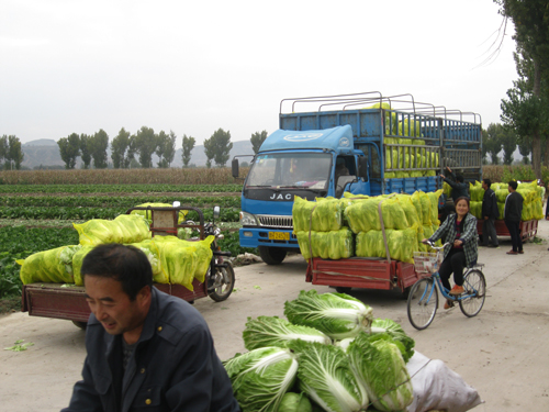 10月23日,河曲縣南園村大白菜種植戶忙著砍白菜、撕老幫、裝袋子,幫助內(nèi)蒙古準(zhǔn)格爾旗、伊金霍洛旗和本縣沙泉鄉(xiāng)的客戶裝白菜,熱鬧中洋溢著豐收的喜悅。該村充分利用土肥水富、交通便利等優(yōu)越條件,大力發(fā)展蔬菜產(chǎn)業(yè),形成了“一村一品”產(chǎn)、供、銷格局,成為晉陜蒙交匯地區(qū)蔬菜基地。特別是近千畝優(yōu)質(zhì)大白菜深受縣內(nèi)外經(jīng)銷商和消費(fèi)者青睞,每年霜降前后,周邊市縣前來購(gòu)買的菜販絡(luò)繹不絕。(賈金理攝)