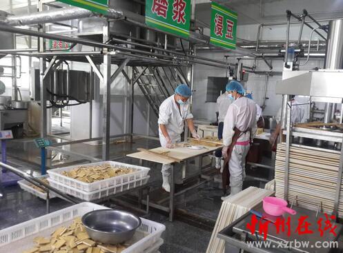 一套套全新的機械設備不停地運轉,新鮮的大黃豆經過浸泡——殺菌——磨漿——過濾——煮漿——混合——凝固——劃腦——壓制成型,透著香味的豆腐干經過真空包裝,通過物流運往北京、太原、大同等地的超市,這是繁峙縣綠源亨通食品有限公司豆腐干生產線,2016年已加工500噸豆腐干,實現(xiàn)產值500萬元,帶動周邊上百名農民增收。(喬偉 攝)