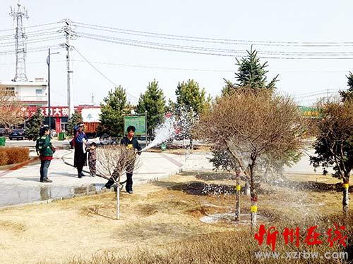 本報訊3月14日,記者在我市城區(qū)長征路上看到,園林工人手持水管,在街頭小游園里細心地給草地澆水。據(jù)悉,市園林處對城區(qū)街頭小游園小廣場的花草樹木已全面開展春季澆水工作,多名工人輪流作業(yè)一周,確保苗木春季正常返青。(張志遠董子源)
