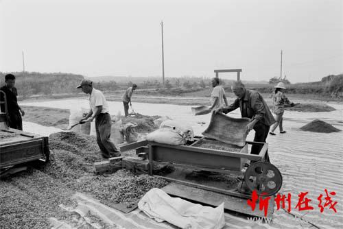 多萬元。圖為村民們正在篩濾籽粒。