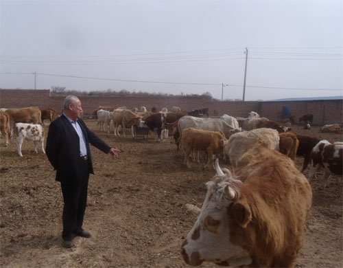 站在牛群中,老劉身形高大,一副“牛司令”的派頭。他看看這頭牛,又摸摸那頭牛,指著一頭黃白花色的牛說:“這叫西蒙達(dá)爾牛,原產(chǎn)于瑞士西部的阿爾卑斯山區(qū)。這頭體型高大的牛叫夏洛萊,原產(chǎn)于法國中西部到東南部地區(qū),是舉世聞名的大型肉牛品種,生長快、肉量多、耐粗放,很受國際市場歡迎?!?/p>