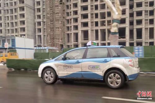 河南安陽(yáng),路上行駛的新能源出租車(chē)。張旭 攝