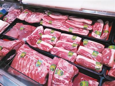 超市冰柜里出售的豬肉。本報記者 孔德晨攝