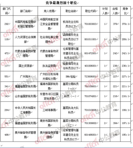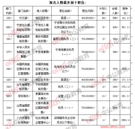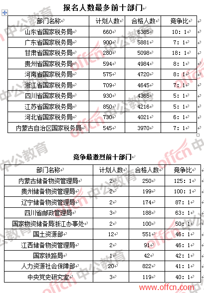 部門:報(bào)名人數(shù)前十均被國稅“拿下”