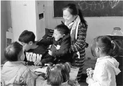 余婷與孩子們快樂(lè)地做游戲。