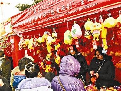 蜜蜂雞、民族雞、粉萌雞、項(xiàng)鏈雞……50余種近2000只造型各異的超萌玩偶雞在今年廠甸廟會(huì)上格外受歡迎,賣到火熱,而賣這些玩偶的廟會(huì)攤主是一群學(xué)生。原來(lái)這是35中國(guó)際部學(xué)生的公益集市“搬”進(jìn)了廠甸廟會(huì),學(xué)生們?cè)诒本﹤鹘y(tǒng)廟會(huì)上玩創(chuàng)意、做公益。