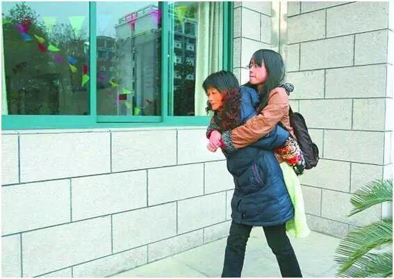 6歲那年,一場車禍奪走了葉沈俏的雙腿。依靠著母親的背和輪椅,她從鄉(xiāng)村小學一路考進浙江大學。村里有人私下議論:“這孩子這輩子完了!”葉沈俏的父母卻不這么認為。“我媽媽有一個非常明確的信念:我的女兒一定要受教育,一定要讀書?!痹谀赣H的陪護下,葉沈俏從村里的小學讀起,開始了和同齡人一樣的學習節(jié)奏。圖為葉沈俏的媽媽背著她去上課。