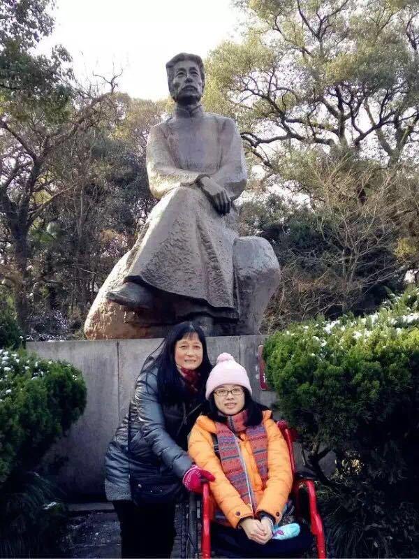 高考時,葉沈俏以全省名次靠前的優(yōu)異成績,被浙江大學錄取。如愿被浙大錄取后,那年初秋,葉媽媽就開始背著葉沈俏穿梭在浙大紫金港校區(qū)各個教室上課?!拔覌寢屖俏业囊粋€勇敢的榜樣,身體力行地告訴我,我可以依靠自己的努力做一個獨立有價值的人?!比~沈俏說。2010年的一次期末考試后,天空正在下雪,越來越大,別的同學早已急匆匆地考完試回家。地滑路濕,葉媽媽便穿上雨衣推著輪椅慢慢走在浙大校園里。葉沈俏說:“那一刻我覺得自己是最幸福的人,我不能放棄,而要更加努力?!眻D為葉沈俏本科畢業(yè)時與母親的合照。