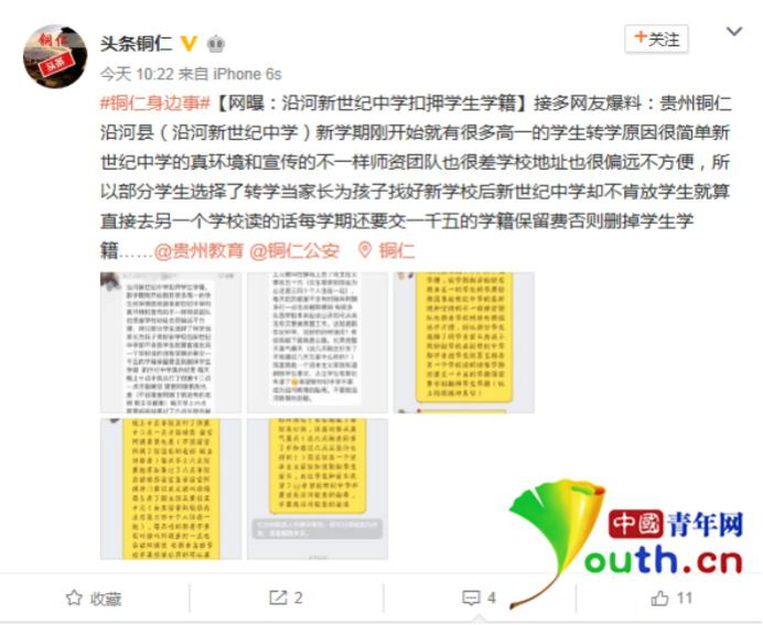 今天上午,記者聯(lián)系當(dāng)?shù)亟逃衷儐?wèn)是否掌握“學(xué)籍保留費(fèi)”的相關(guān)情況,教育局辦公室工作人員表示,教育局昨天下午便收到消息,并于今天上午由正副局長(zhǎng)帶隊(duì)前往新世紀(jì)中學(xué)調(diào)查情況,調(diào)查結(jié)果會(huì)交給沿河縣委宣傳部。今天下午,記者聯(lián)系宣傳部,工作人員表示,新世紀(jì)中學(xué)已將所收“學(xué)籍保留費(fèi)”退還給學(xué)生家長(zhǎng),常務(wù)校長(zhǎng)羅元慶被教育局嚴(yán)肅批評(píng),并被學(xué)校董事會(huì)解除職務(wù)。