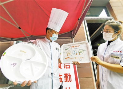 9月15日,北京交通大學(xué)餐廳推出“我的餐盤我做主——優(yōu)化膳食結(jié)構(gòu) 夯實(shí)免疫基石”主題活動(dòng)?;顒?dòng)倡導(dǎo)飲食多樣化,減少食物浪費(fèi)。餐盤上標(biāo)注的谷薯、蔬菜、水果、魚肉等膳食種類,將科普和節(jié)約融為一體。