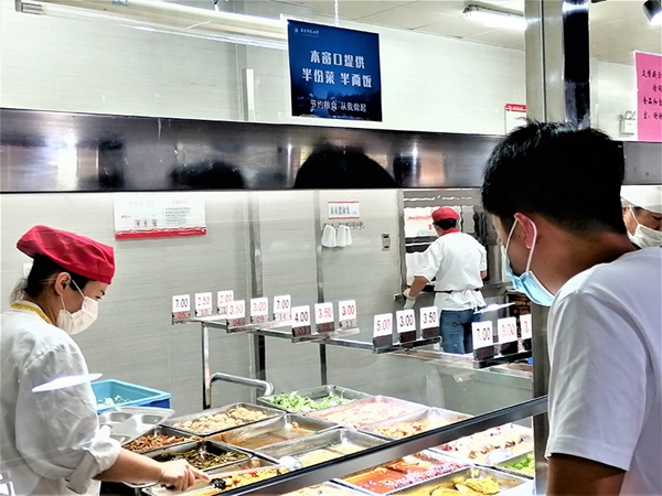 天津大學(xué)學(xué)生食堂新學(xué)期分別推出小份菜窗口、大小份售賣、小碗菜自選等售賣形式,倡導(dǎo)物盡其用,鼓勵(lì)餐后剩余打包。同時(shí)對于雞腿、鴨腿、雞翅、魚等品種,可根據(jù)個(gè)數(shù)、塊數(shù)規(guī)格售賣或稱重售賣。售賣形式的豐富,便于就餐者按需取用,既節(jié)約又實(shí)惠。