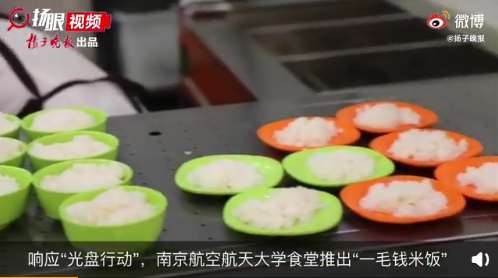 南京航空航天大學(xué)食堂不僅推出“一毛錢米飯”,還推出“光盤獎(jiǎng)勵(lì)”,只要“光盤”,便能得到酸奶等獎(jiǎng)勵(lì)。