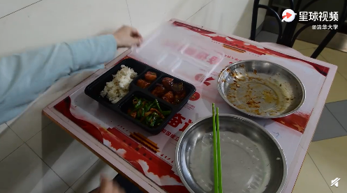 在清華食堂,適合按重量出售的飯菜按“兩”計(jì),饅頭可根據(jù)購買者需求按1/2份售賣,除此之外,餐廳和快餐還提供打包袋、打包盒,可以剩餐打包。