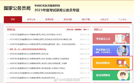 14日晚間,不少考生在網(wǎng)站曬出剛剛查到的2023國考筆試成績。一些網(wǎng)友反映2023國考專題網(wǎng)頁上分?jǐn)?shù)查詢通道擁擠,網(wǎng)頁顯示“服務(wù)器繁忙”。今年1月8日,中央機(jī)關(guān)及其直屬機(jī)構(gòu)2023年度公務(wù)員考試公共科目筆試舉行。本次國考計(jì)劃招錄3.71萬人,152.5萬人實(shí)際參加考試,實(shí)際參加考試人數(shù)與錄用計(jì)劃數(shù)之比約為41:1。