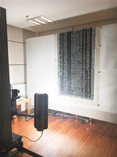 對石刻拓片進行古籍?dāng)?shù)字化拍攝。中國國家圖書館供圖