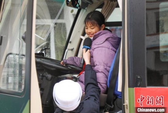 圖為交警工作人員邀請(qǐng)學(xué)生登上大車駕駛室,感受車輛盲區(qū),以學(xué)生喜聞樂見的方式普及交通安全知識(shí)。 王治康 攝