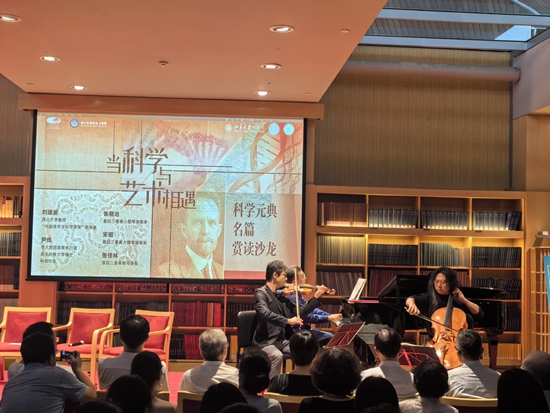 活動(dòng)現(xiàn)場(chǎng)。李瑞璇/攝 夏日炎炎,形式多樣的社會(huì)實(shí)踐讓學(xué)生們的假期生活不再局限于書本與課堂。在國(guó)家大劇院舉辦的“當(dāng)科學(xué)與藝術(shù)相遇——科學(xué)元典名篇賞讀沙龍”,為青少年打開一扇通往科學(xué)與藝術(shù)交融世界的大門,認(rèn)識(shí)基因并感受生命的音符。 隨著燈光的調(diào)暗,一段優(yōu)美的旋律響起,舞臺(tái)上的“基因三重奏”組合開始演奏《莫扎特主題華麗變奏曲》,開啟一段科學(xué)與藝術(shù)的邂逅。 活動(dòng)中,科普圈“名嘴”、華大集團(tuán)首席執(zhí)行官、科普作家尹燁首先以生動(dòng)的語(yǔ)言,講述了基因的發(fā)現(xiàn)及遺傳學(xué)發(fā)展的歷史。從達(dá)爾文、孟德爾到摩爾根,再到薛定諤、普里戈金,以至當(dāng)下的“人類基因組計(jì)劃”,遺傳學(xué)的發(fā)展走過(guò)了波瀾壯闊的歷程。他提到,摩爾根一生崇尚實(shí)驗(yàn)和事實(shí),正是在懷疑的科學(xué)精神和嚴(yán)謹(jǐn)?shù)膶?shí)驗(yàn)態(tài)度推動(dòng)下,逐步揭示了遺傳學(xué)的基本規(guī)律;而其真正了不起的地方在于“桃李滿天下”,其團(tuán)隊(duì)的研究模式對(duì)現(xiàn)代科學(xué)研究產(chǎn)生了深遠(yuǎn)影響。 在對(duì)談環(huán)節(jié),西北大學(xué)教授、“中國(guó)青年女科學(xué)家獎(jiǎng)”獲得者劉建妮與尹燁,基因三重奏的三位藝術(shù)家張佳林、張精冶、宋昭,圍繞基因與音樂的關(guān)系、對(duì)藝術(shù)天賦的看法等主題暢談,從不同維度擴(kuò)展和提升了學(xué)生們的視野和創(chuàng)造性思維。 “在基因?qū)W領(lǐng)域,‘天賦’這個(gè)概念是否存在?”張佳林向兩位科學(xué)家提問,這個(gè)問題源于他在中央音樂學(xué)院任教時(shí)家長(zhǎng)的疑惑,“每星期我們都會(huì)遇到‘您覺得我家的孩子適合干音樂這行嗎’這樣的問題”。 尹燁認(rèn)為真正有樂感的人是可遇不可求的,但有一件事情很確定,如果想讓一個(gè)人愛音樂,只要給他提供類似的環(huán)境就行了。張佳林舉了個(gè)例子:他作為鋼琴演奏家每天都會(huì)在家彈鋼琴,他的兒子在耳濡目染之下,也把鋼琴?gòu)椀煤芎谩?/p> “環(huán)境可以給人提供心理暗示?!币鼰罘治?,有的家長(zhǎng)天天在家打游戲,逼孩子練琴,是不可能培養(yǎng)出音樂天才的。他以理查德·道金斯的《自私的基因》這本書為例,書中提到了一個(gè)對(duì)應(yīng)基因的詞叫“模因”——通過(guò)模仿而非遺傳的方式進(jìn)行傳遞。 “如果這個(gè)大家族都會(huì)玩吹拉彈唱,這就成了他生活的一部分。雖然大部分人沒有演奏音樂的天賦,但我相信熱愛音樂、喜愛音樂的氛圍,是可以營(yíng)造出來(lái)的。”尹燁說(shuō)。 劉建妮和尹燁持相同觀點(diǎn),她分享了閱讀的文獻(xiàn):2014年澳大利亞墨爾本大學(xué)研究人員發(fā)現(xiàn)“音樂是有天賦的”,在人類第4號(hào)染色體上,有和音樂感知相關(guān)的信息,第8號(hào)染色體上的一些位點(diǎn)和絕對(duì)音高感知相關(guān),第16號(hào)染色體上有音樂記憶的信息……劉建妮認(rèn)為,在此基礎(chǔ)上,音樂天賦也會(huì)隨著環(huán)境的變化而演化。 尹燁通過(guò)多年對(duì)基因的研究分析,認(rèn)為即使在這樣的情況下依然要“相信環(huán)境的作用,相信還有另外的可能”。 “其實(shí),我們每個(gè)人身體里都有癌癥基因?!眲⒔萘牡健安荒鼙磉_(dá)的基因”時(shí)舉例說(shuō),關(guān)鍵在于外部環(huán)境是否激活這些基因,她認(rèn)為,如果人有良好的生活習(xí)慣和心態(tài),癌癥基因就不會(huì)被“激活”。 尹燁也為現(xiàn)場(chǎng)家長(zhǎng)和孩子們分享了他的成長(zhǎng)故事,其中讓他對(duì)基因開始感興趣的原因,離不開外部環(huán)境的引導(dǎo)。 “我在天賦上并不出眾?!币鼰钫f(shuō),父母在他小時(shí)候便常帶他走進(jìn)大自然,他也是在山海當(dāng)中愛上了基因多樣性。他呼吁家長(zhǎng)們多帶孩子出門看世界,讓他們學(xué)會(huì)熱愛生活,并在其中找到自己所愛。 活動(dòng)結(jié)束后,現(xiàn)場(chǎng)的家長(zhǎng)們表示,這樣的暑期活動(dòng)不僅讓孩子們?cè)谳p松愉快的氛圍中學(xué)習(xí)了知識(shí),更激發(fā)了孩子們對(duì)科學(xué)和藝術(shù)的興趣,提高了對(duì)“科學(xué)之美”的鑒賞力和感悟力。現(xiàn)場(chǎng)一位高中老師說(shuō):“通過(guò)科學(xué)與藝術(shù)的有機(jī)結(jié)合,活動(dòng)給孩子們提供了一次接觸高端素質(zhì)教育的機(jī)會(huì),為培養(yǎng)未來(lái)社會(huì)所需的人才提供新的思路。” 一名高中生說(shuō):“沒想到科學(xué)知識(shí)可以和藝術(shù)結(jié)合得這樣有趣巧妙!通過(guò)科學(xué)與藝術(shù)融合,教科書上的科學(xué)知識(shí)好像一下子活起來(lái)了,科學(xué)經(jīng)典也變得更加親近和容易閱讀了。”(李瑞璇) (責(zé)任編輯:盧相?。?/span> |