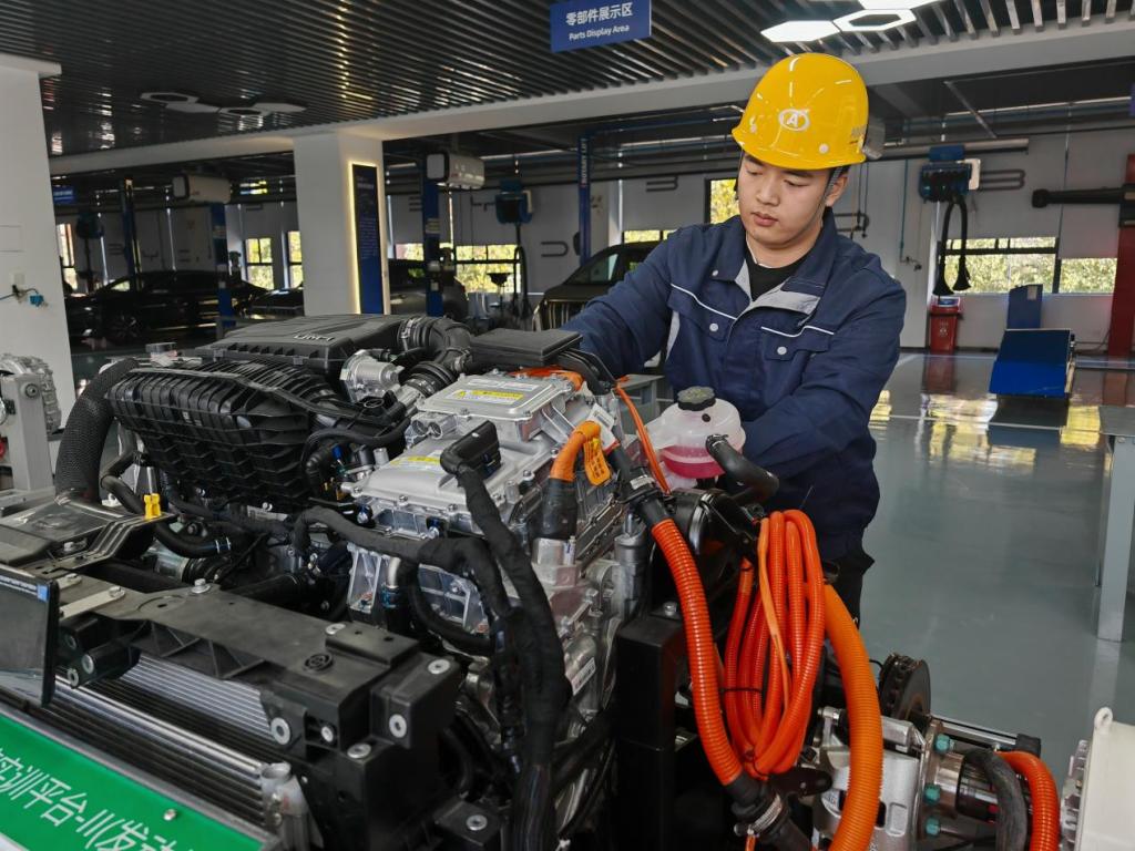 為支撐新能源汽車產(chǎn)業(yè)崛起,河南省全省高職院校開設(shè)相關(guān)專業(yè)點(diǎn)419個(gè),相關(guān)在校生22.14萬(wàn)人。在河南機(jī)電職業(yè)學(xué)院與比亞迪共建的現(xiàn)場(chǎng)工程師學(xué)院,圍繞“現(xiàn)場(chǎng)工程師”培養(yǎng)開發(fā)了37門項(xiàng)目化課程。該校每年向鄭州航空港區(qū)比亞迪工廠輸送1000余名技能人才,不少學(xué)生迅速成長(zhǎng)為產(chǎn)線骨干?!皩W(xué)校通過(guò)‘項(xiàng)目+人才’雙交付育人模式,極大地增強(qiáng)了人才培養(yǎng)與企業(yè)需求的匹配度?!北葋喌峡傃b車間主任如是說(shuō)。