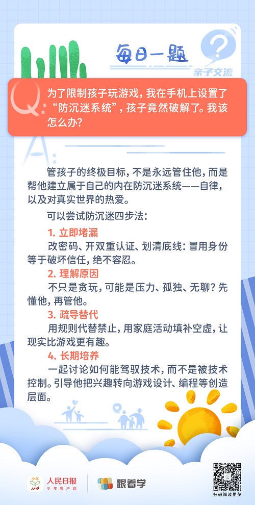 每日一題丨家長(zhǎng)如何防止孩子繞過“防沉迷系統(tǒng)”訪問游戲?