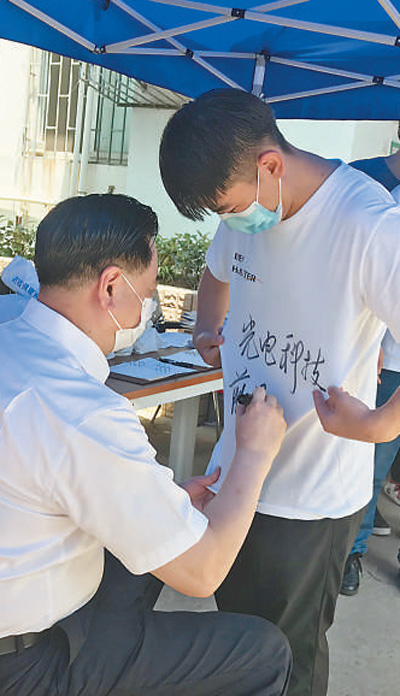 8日,華中科技大學校長為畢業(yè)生寫下祝福語。朱必勇攝