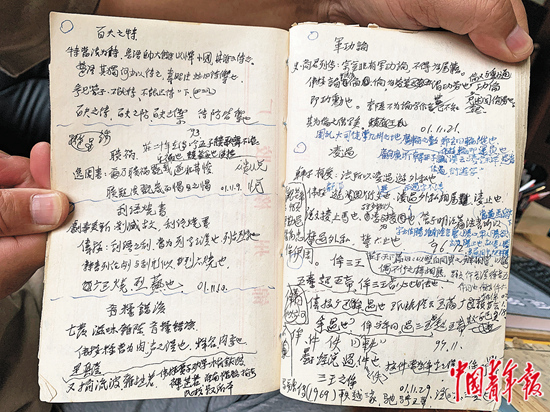 這些已刊發(fā)的文章,不少來源于他早期寫下的讀書札記。他積攢下了幾十本筆記,落款的時(shí)間跨越了30年。