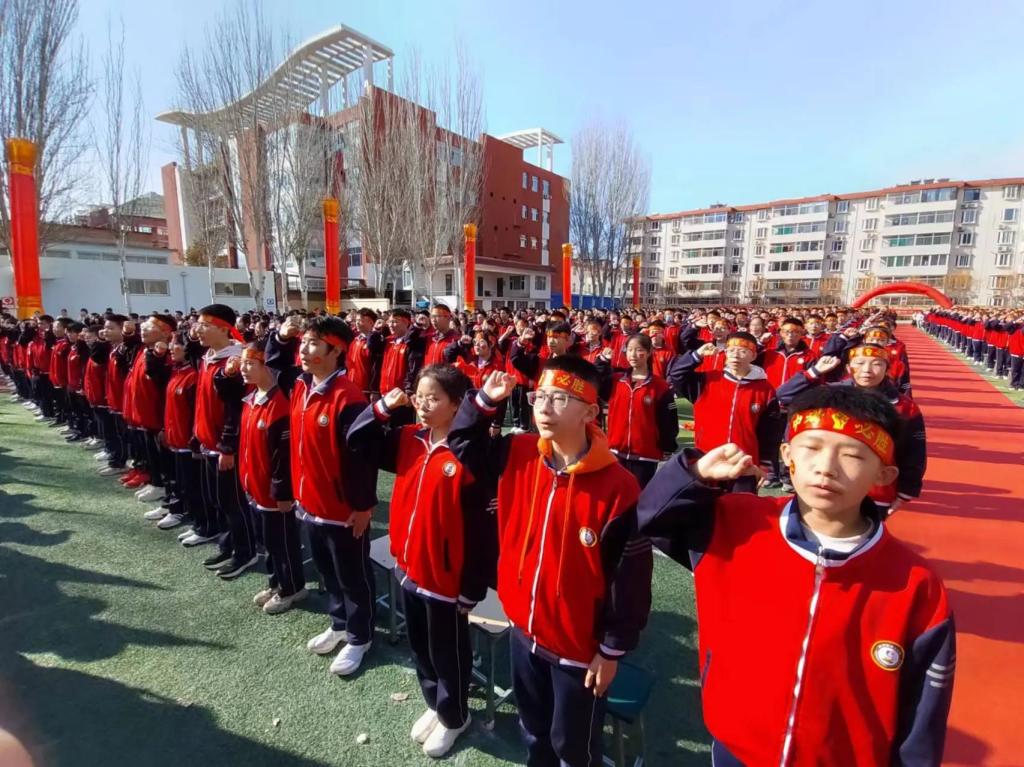 趙俊瑞校長表示,在去年學(xué)校中考取得了優(yōu)秀的成績,號召全體師生發(fā)揚釘子精神,奮斗一百天,決勝一百天,勉勵在場同學(xué)們堅定決心,不畏艱難,堅持到底,激勵全體師生團結(jié)一致,開拓創(chuàng)新,努力奮斗,以科學(xué)的方法和良好的心態(tài)決勝中考戰(zhàn)場。“龍行龘龘啟新程,前程朤朤向未來”,攻堅克難,千錘百煉。風(fēng)雨兼程,無畏前行,在高質(zhì)量發(fā)展的道路上奮勇前進。