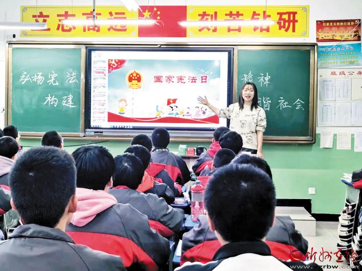 本報訊 2020年12月4日,是我國第七個國家憲法日,為大力弘揚(yáng)憲法精神,向?qū)W生普及憲法和法律知識,引導(dǎo)青少年學(xué)生自覺成為憲法的忠實(shí)崇尚者、自覺遵守者、堅定捍衛(wèi)者,營造良好的校園法治教育環(huán)境和氛圍,北方中學(xué)開展了以“弘揚(yáng)憲法精神,護(hù)航少年成長”為主題的“12·4憲法日”系列活動。