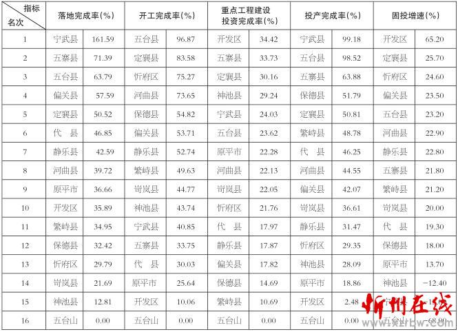 忻州1-5月各縣(市、區(qū))重點工程完成率和固定資產增速排名表