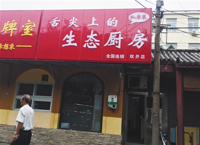 7月25日,北京朝陽(yáng)區(qū)勁松一中南門西側(cè)的百度生態(tài)廚房雙井店,門口掛有標(biāo)牌。